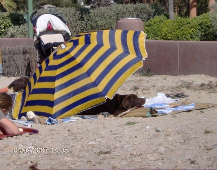 Es war dort echt toll. Die Sonne hat die ganze Woche gescheint. So konnte ich jeden Tag mit meinem Bruder Aragon spielen und im Meer schwimmen.